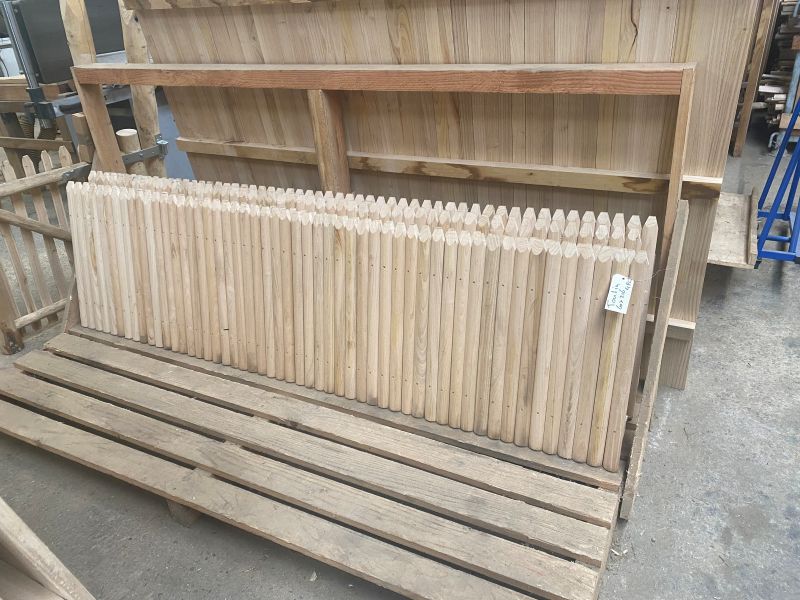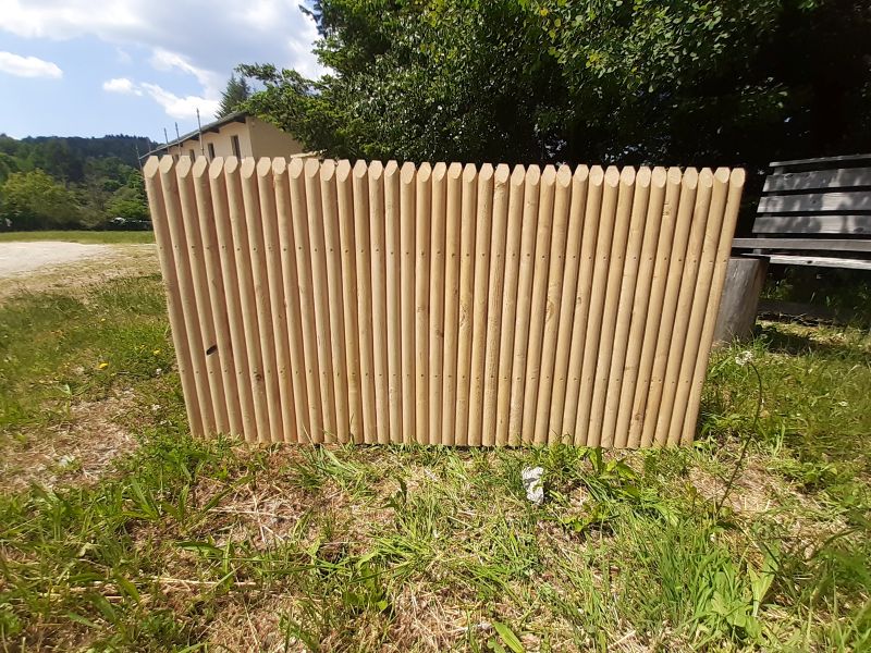Wie unsere Standardmodelle bestehen auch diese Paneele aus gefrästen Halbrundlatten aus Kastanienholz, mit Edelstahlnägeln befestigt und auf Langlebigkeit ausgelegt.