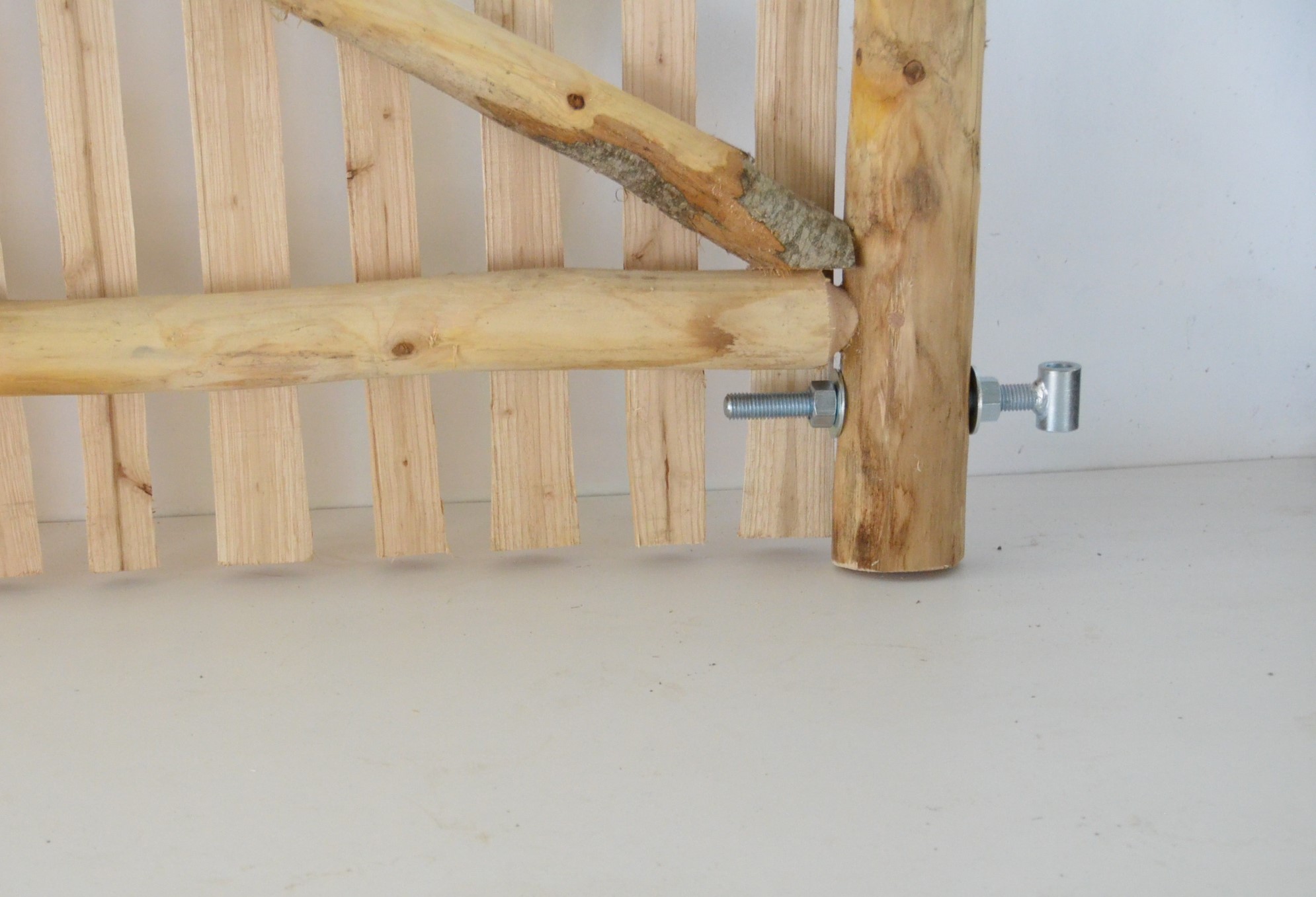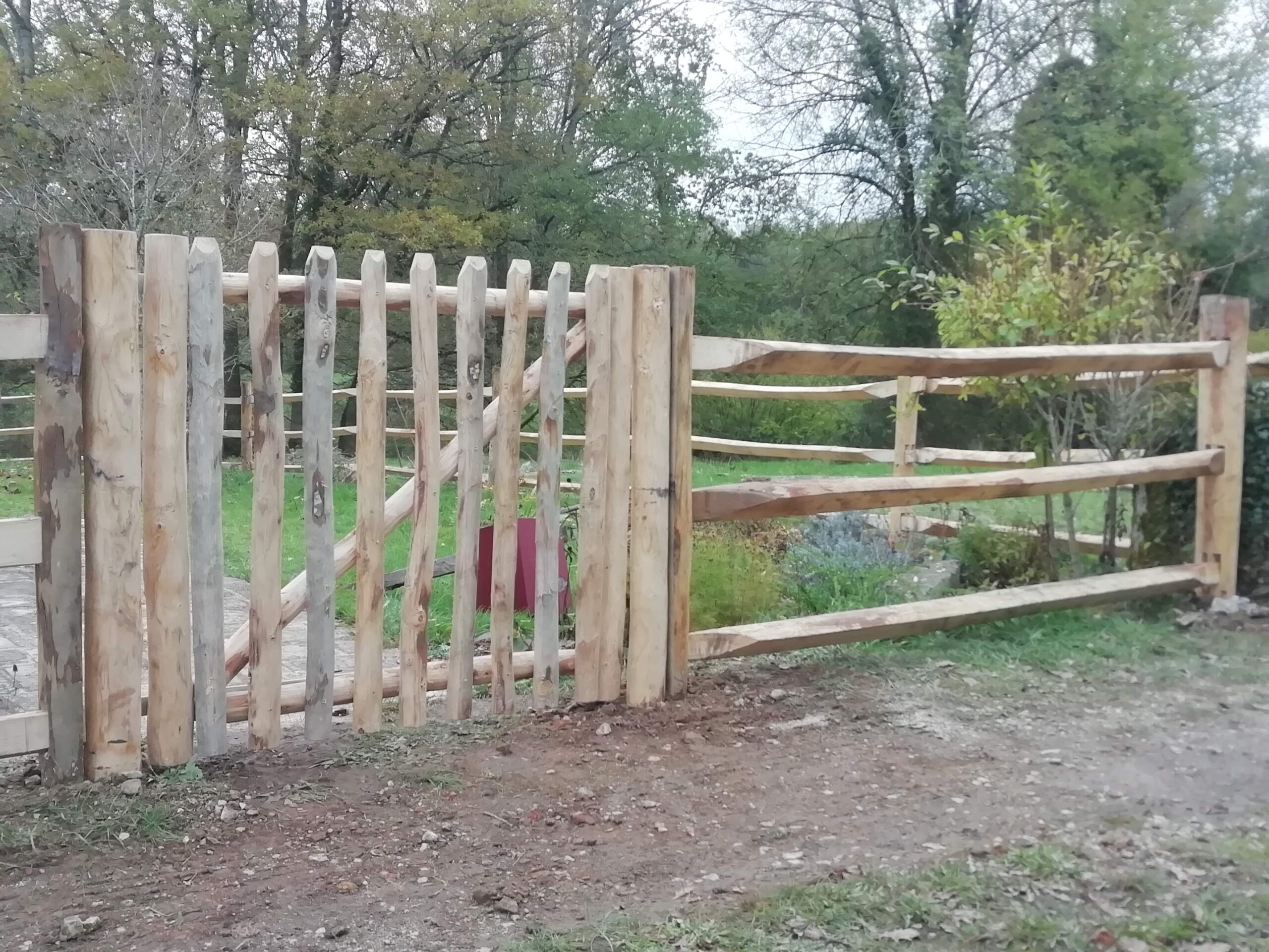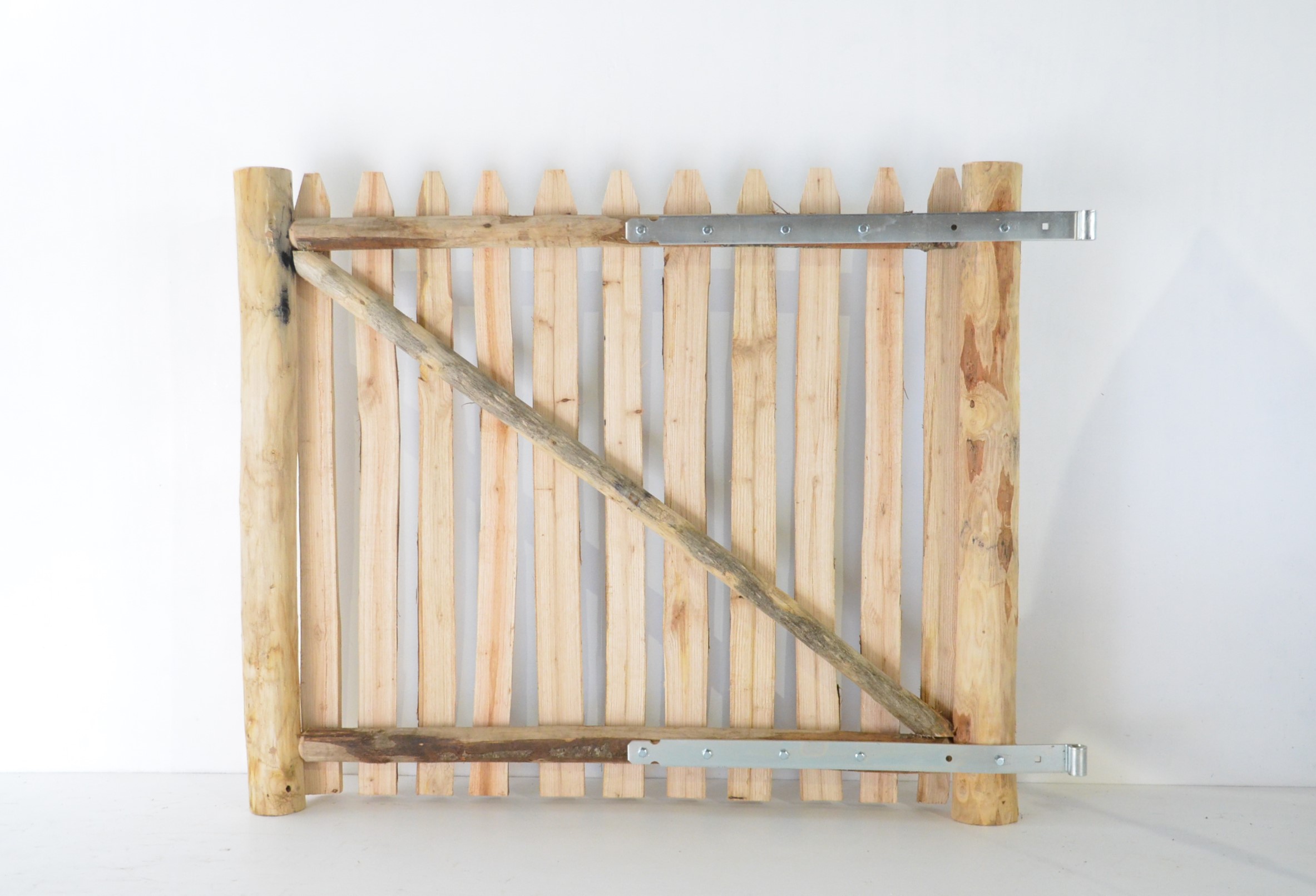 Das Tor „Champêtre simple“ ist in den Längen 250 und 300 cm erhältlich. Bei diesen Flügelbreiten fertigen wir automatisch einen Holzgriff zum Schließen an und liefern Ihnen einen Stützpfosten mit. Dies ist auch für alle anderen Abmessungen möglich, jedoch optional und auf Anfrage.