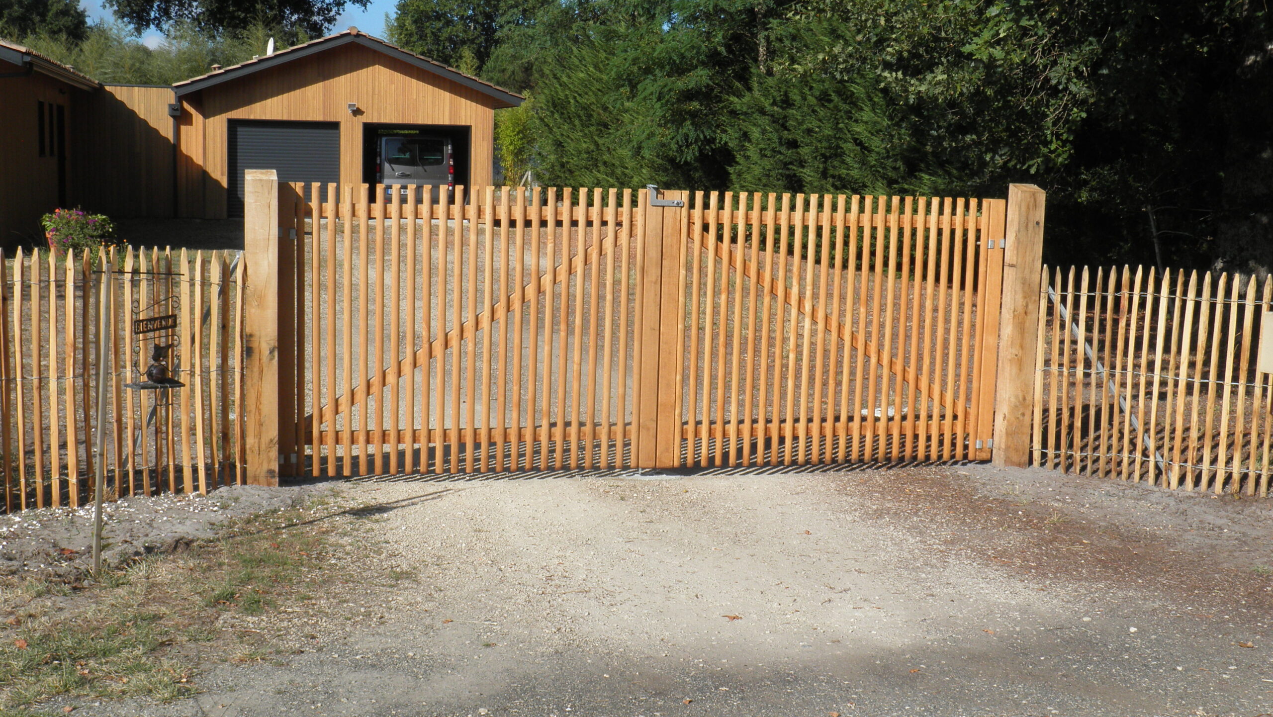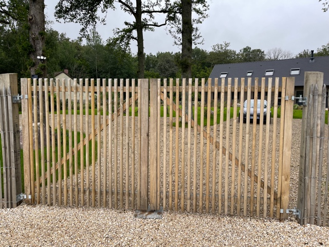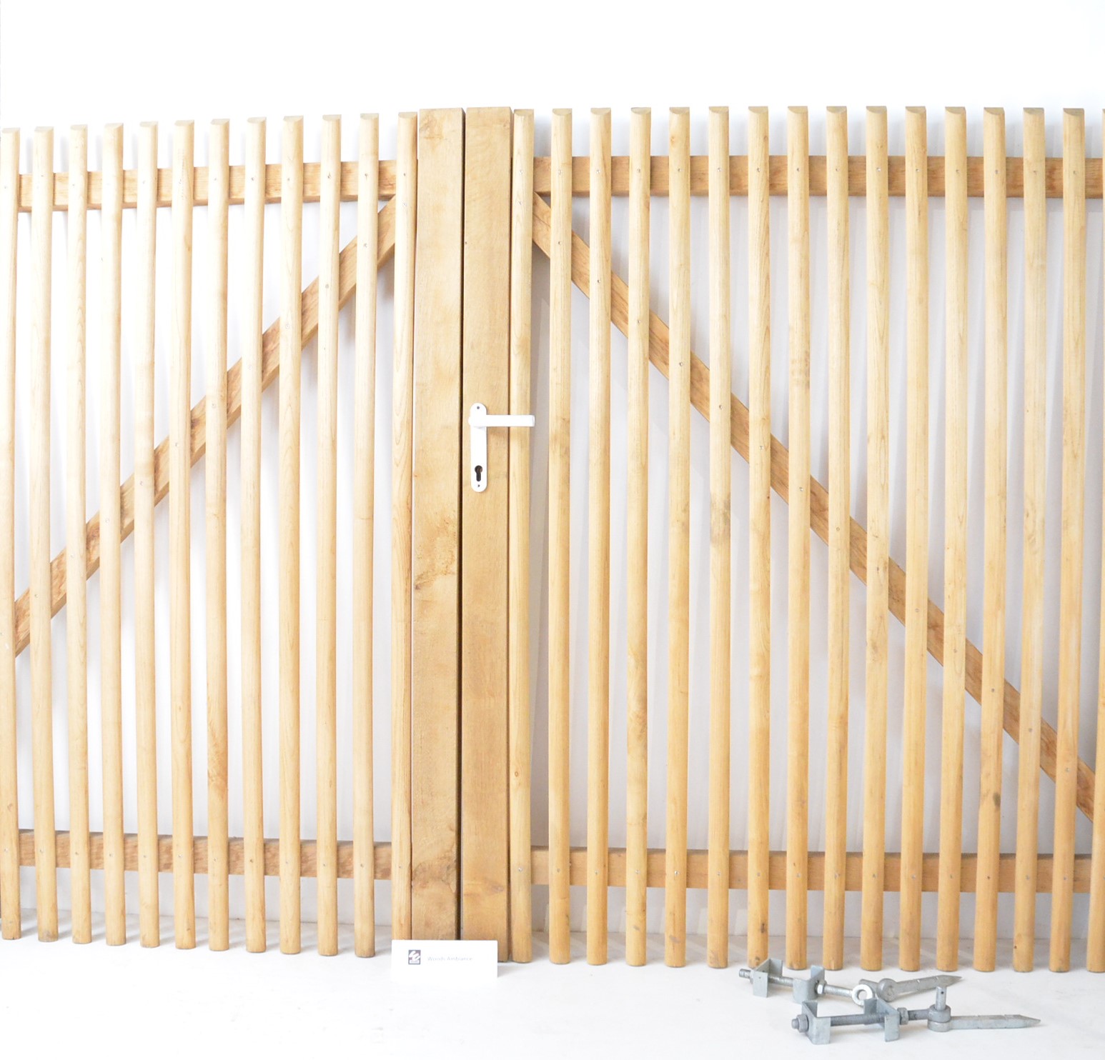 Das elegante Tor ist moderner als das französische oder das ländliche Modell. Sein quadratischer Rahmen sowie die Pfosten bestehen aus Eichenholz, die Staketen sind aus Kastanienholz gefertigt. Dieses Tor eignet sich hervorragend für breite Durchgänge und lässt sich ideal mit Kastanien-Rollzäunen (Ganivelle) oder blickdichten Zaunelementen kombinieren. Das Tor ist in allen Größen bis zu 2 Meter mal 2 Meter pro Flügel erhältlich. Alles ist montagefertig!