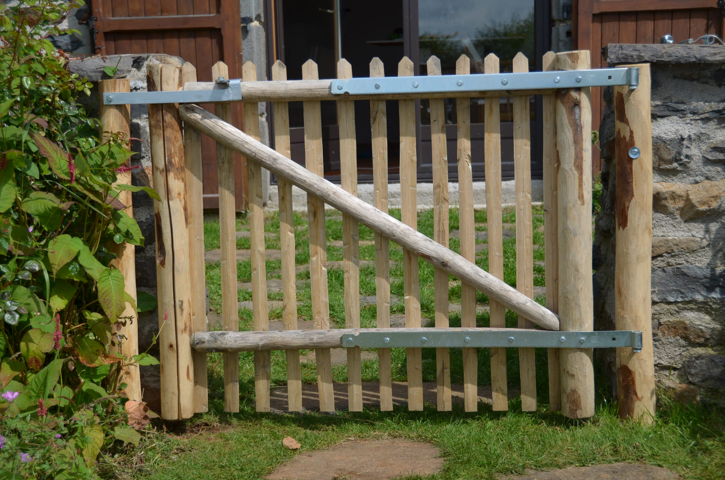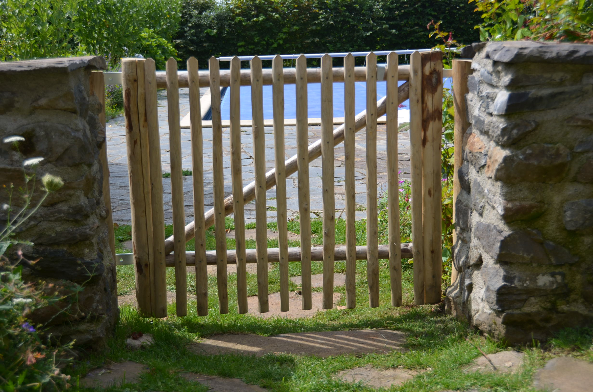 Die Kastanienstaketen sind mit Edelstahlschrauben montiert.