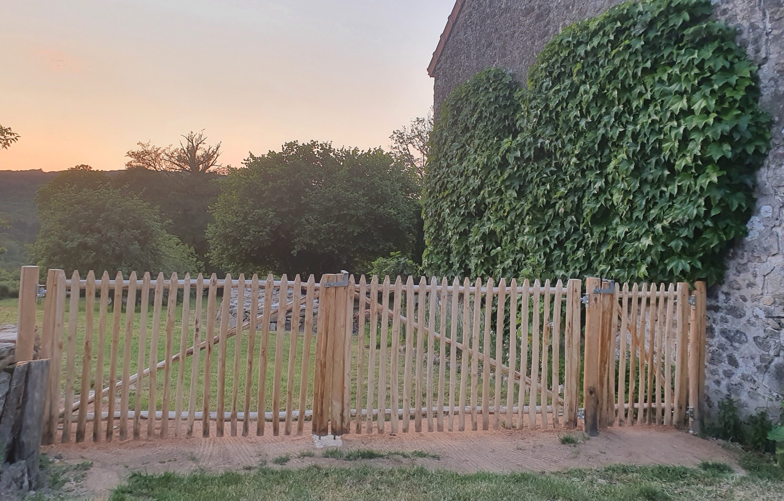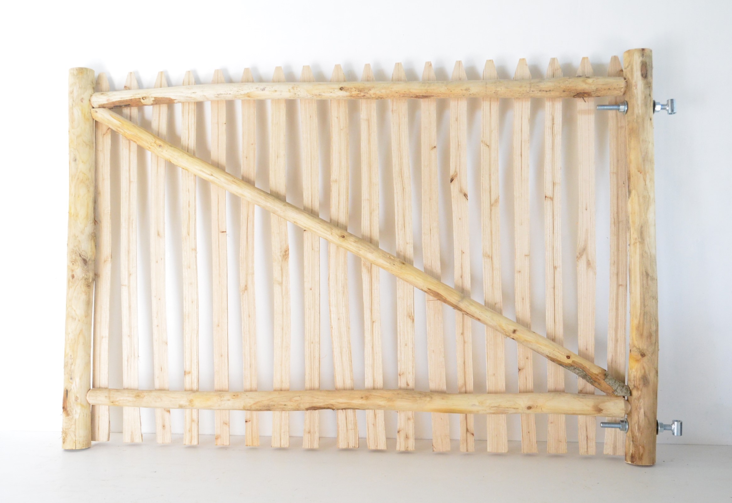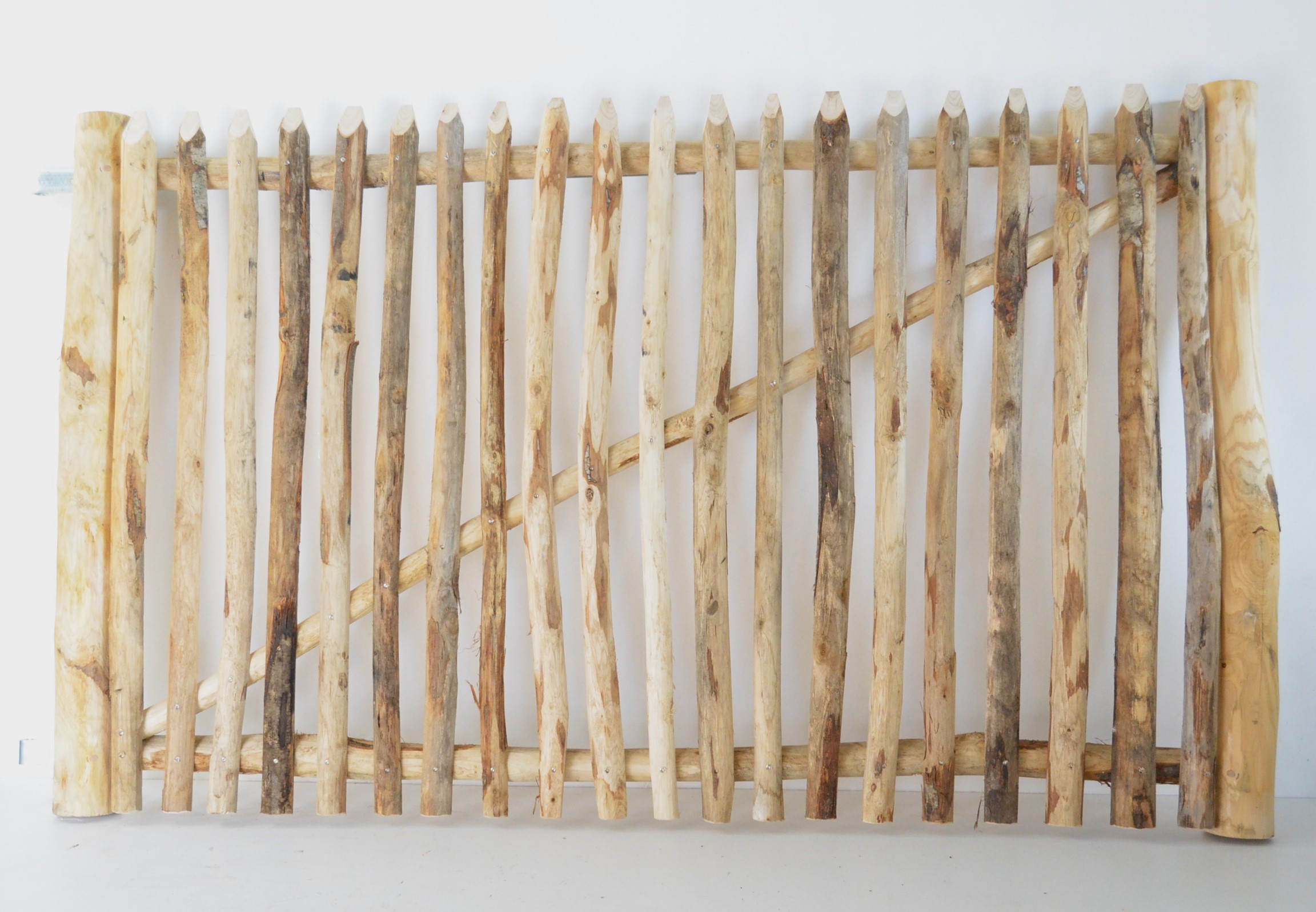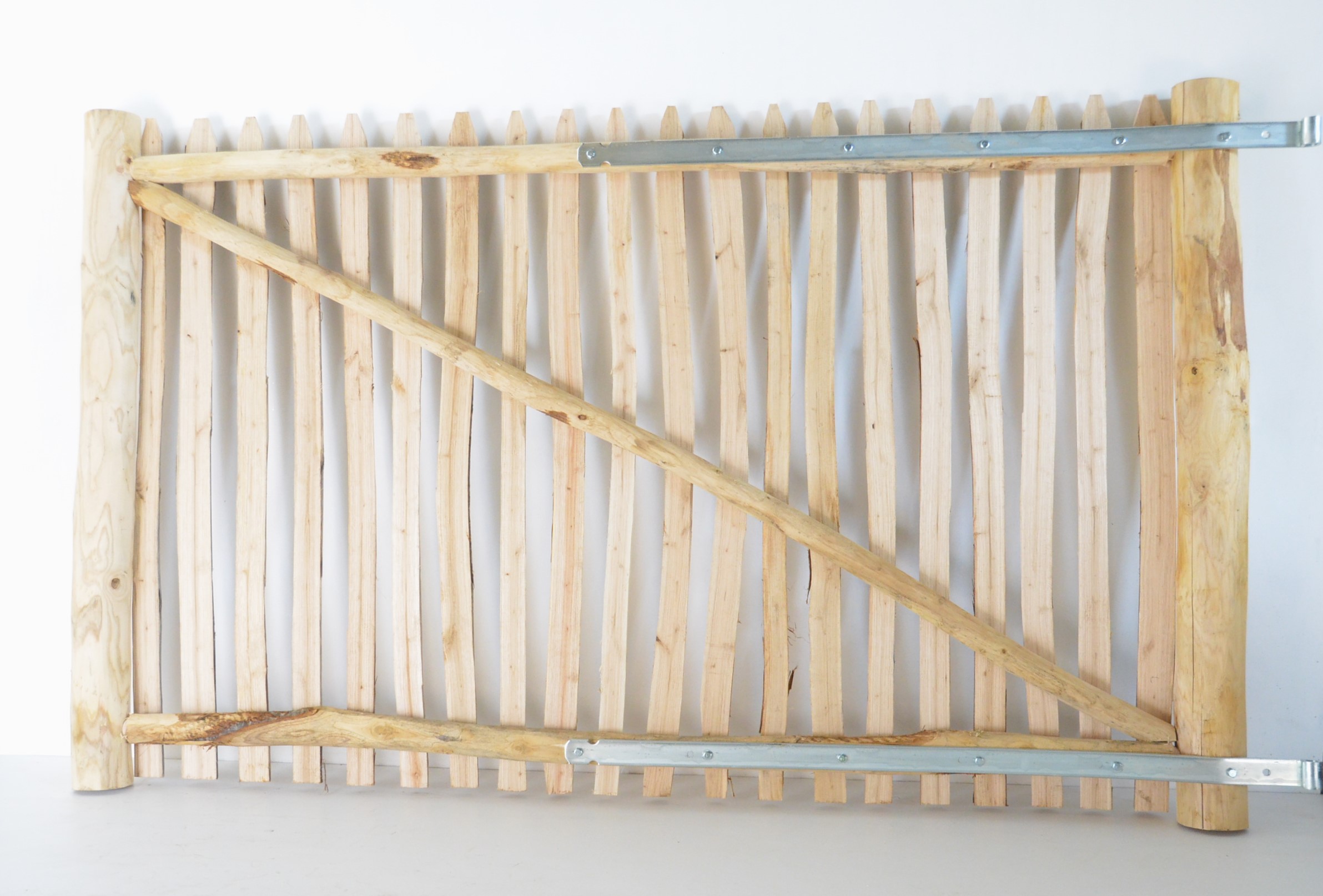 Das französische Tor ist freundlich und rustikal, es ist ein sehr schöner Eingang zu Ihrem Garten oder Gemüsegarten. Es ist handgefertigt, der Rahmen ist aus Kastanienholz und mit rustikalen halbrunden Stelzen, ebenfalls aus Kastanienholz, verkleidet. Der Franzose eignet sich perfekt für die Kombination mit Pfahlwinden. Er harmoniert mit der Natur.